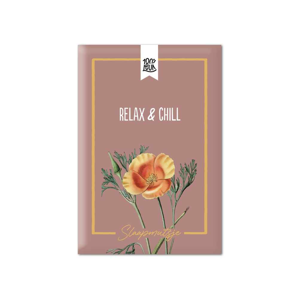 Geef een beetje natuur met een persoonlijke boodschap. Dit kleurrijke bloemenzakje met de tekst ‘Relax & chill’ bevat slaapmutszaadjes.