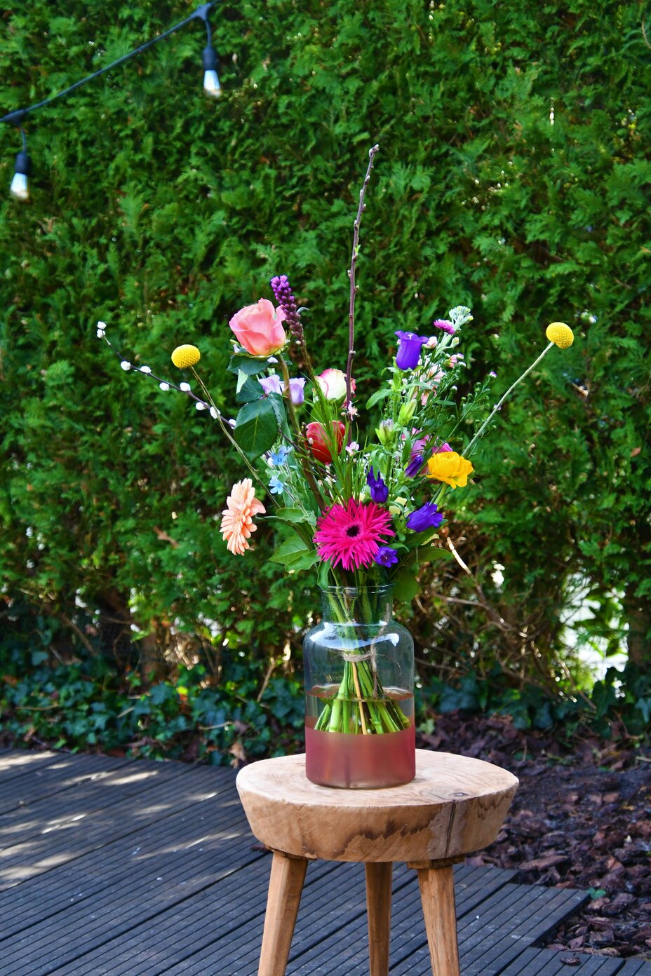 Zet de bloemen in een schone vaas (nooit schoonmaken met afwasmiddel of in de vaatwasser!) met lauw warm water en los hierin de bijgeleverde snijbloemenvoeding op. Let erop dat het blad het water niet raakt. Als laatste hoef je alleen nog maar te gaan genieten van je prachtige bloemen!